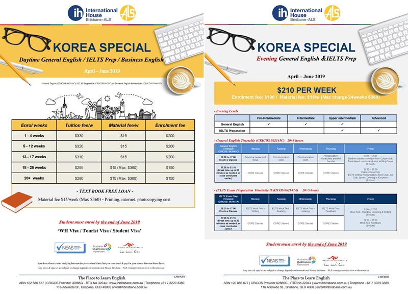 [이벤트] IH Brisbane ALS어학원 2019년 4월-6월 프로모션(~30/06/2019)