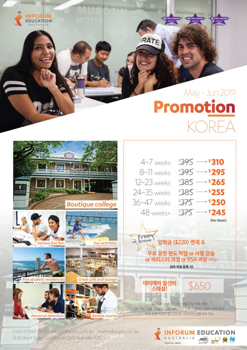 [Inforum] Inforum 인포럼 어학원(골드코스트) 2019년 5월 - 6월 프로모션(~30/06/2019)