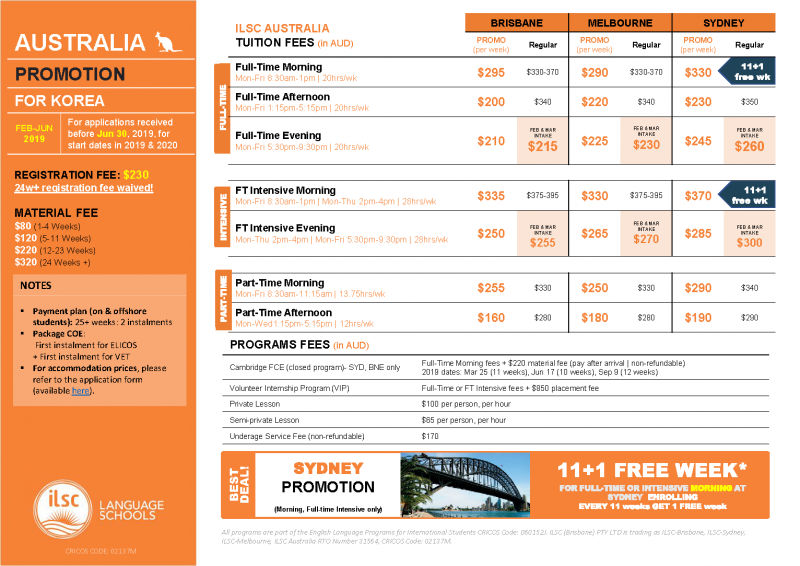 [ILSC] ILSC 어학원 2019년 2월-6월 프로모션(~30/06/2019)