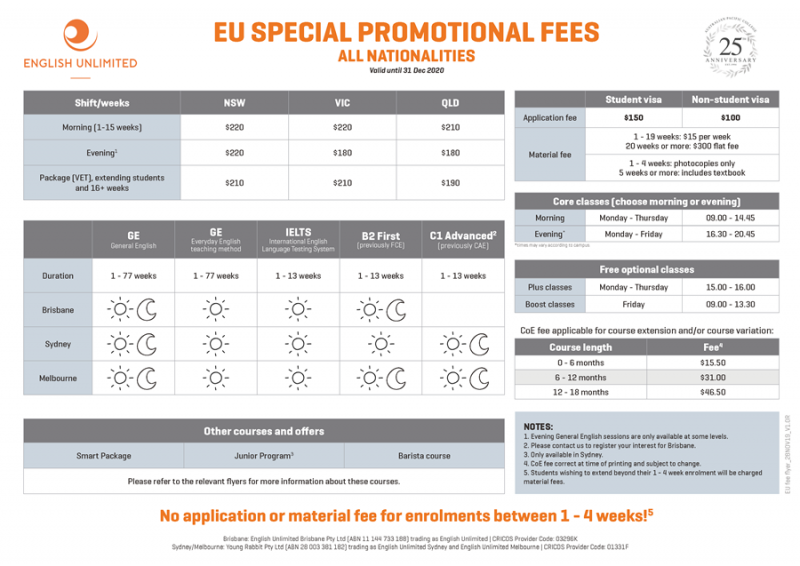 EU 어학원 2020년 1월 - 12월 프로모션(~31/12/2020)
