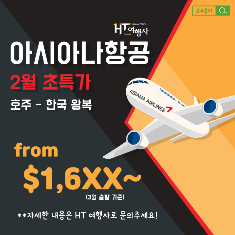 아시아나항공 호주-한국 왕복 항공권 2월 초특가!