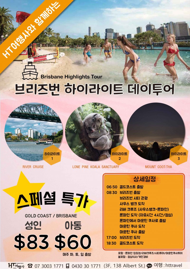 ☆$83 리버크루즈+론파인+마운틴쿠사 ☆ 브리즈번 하이라이트 데이투어
