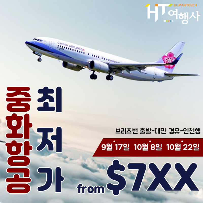 브리즈번 출발 대만경유 인천행 중화항공 항공편이