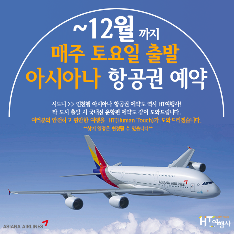 ~12월 말까지 **아시아나 항공편** 매주 토요일 출발!