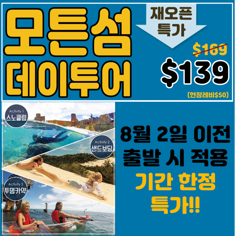 $169->$139 기간한정 모튼섬 데이투어 특가!