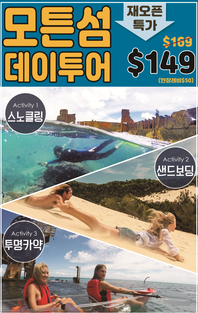 $169-> $149 모튼섬 3종 데이투어 리오픈 특가
