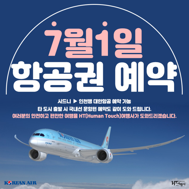 **7월 1일 대한항공 예약 접수 안내 (시드니 출발 인천행 / 국내선 )