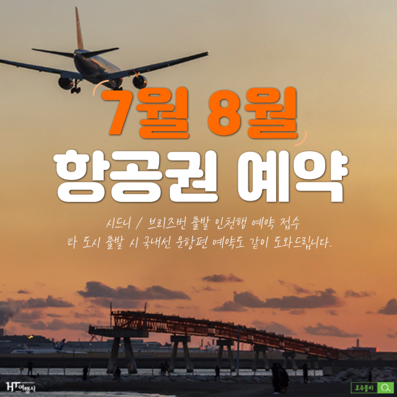 7월 및 8월 브리즈번/시드니 출발 인천행 항공권 예약 접수