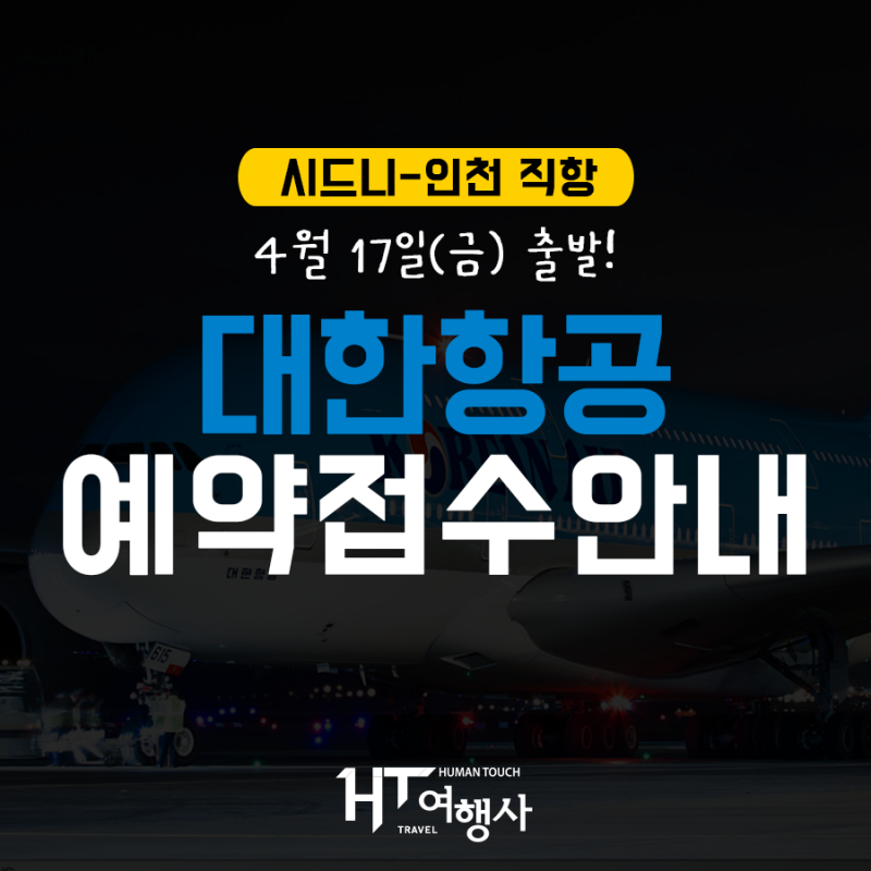 4월 17일(금) 시드니 출발 인천 직항 대한항공 운항편 예약접수를 실시합니다.