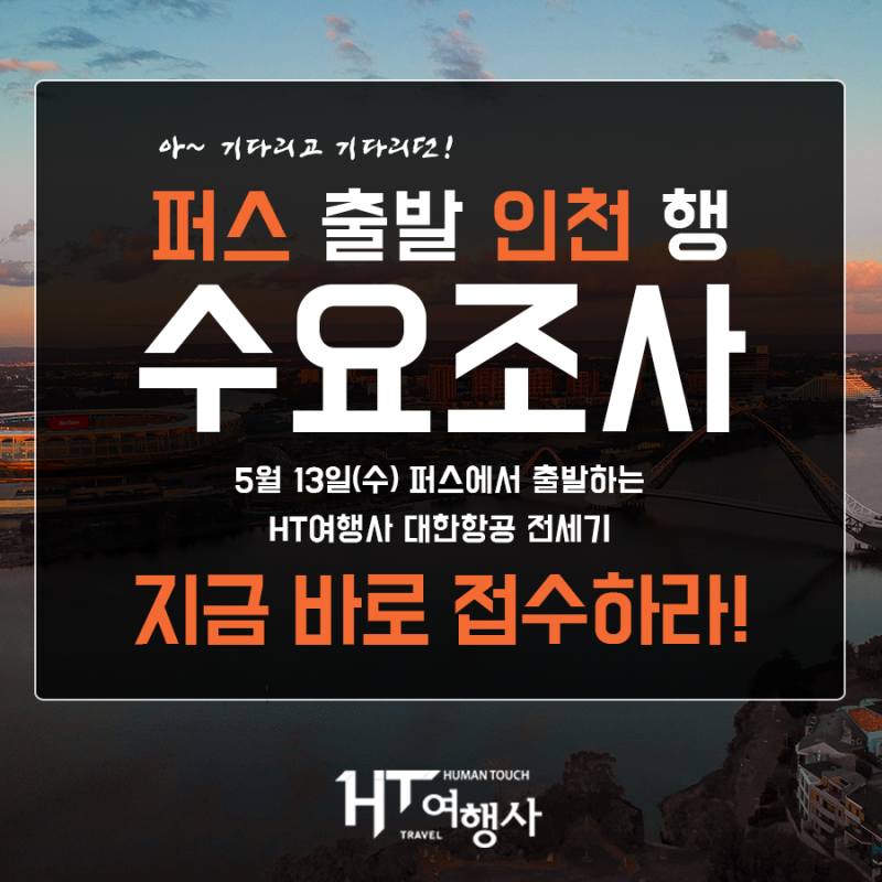 HT여행사 퍼스 출발 인천행 직항! 전세기 수요조사를 실시합니다.