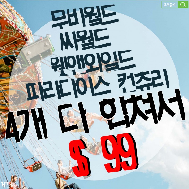 [무비월드 + 웻앤와일드 + 파라다이스 컨츄리 + 씨월드 ] $99