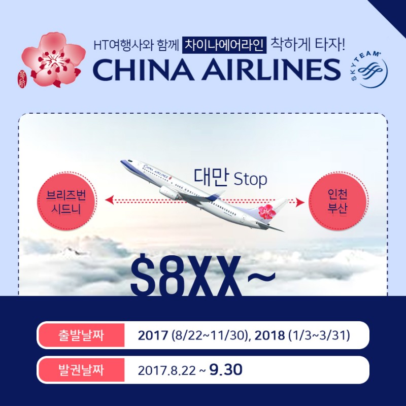 대만여행하고 한국가자!$8XX!차이나에어라인