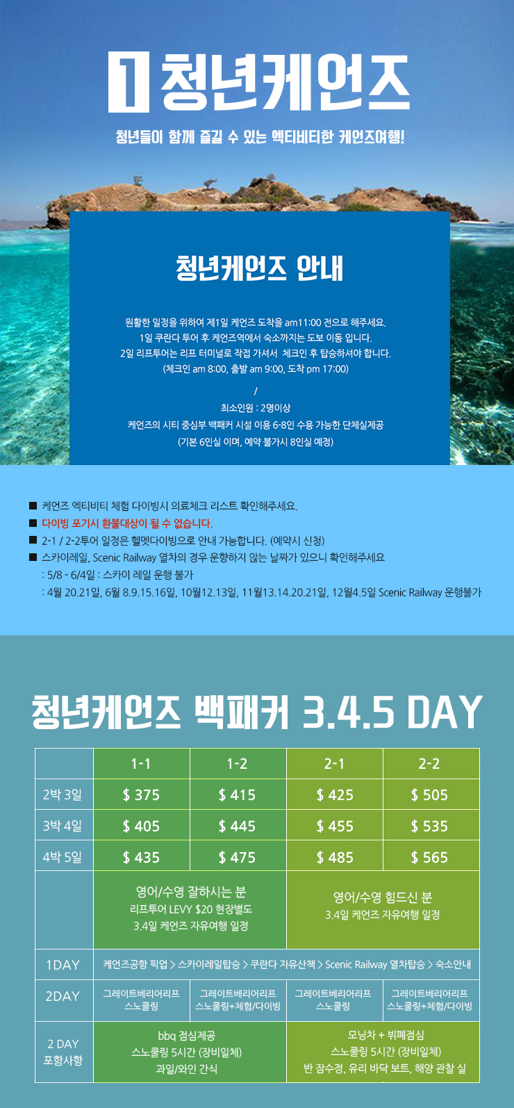 청년들을 위한 케언즈여행! 청년케언즈 :)