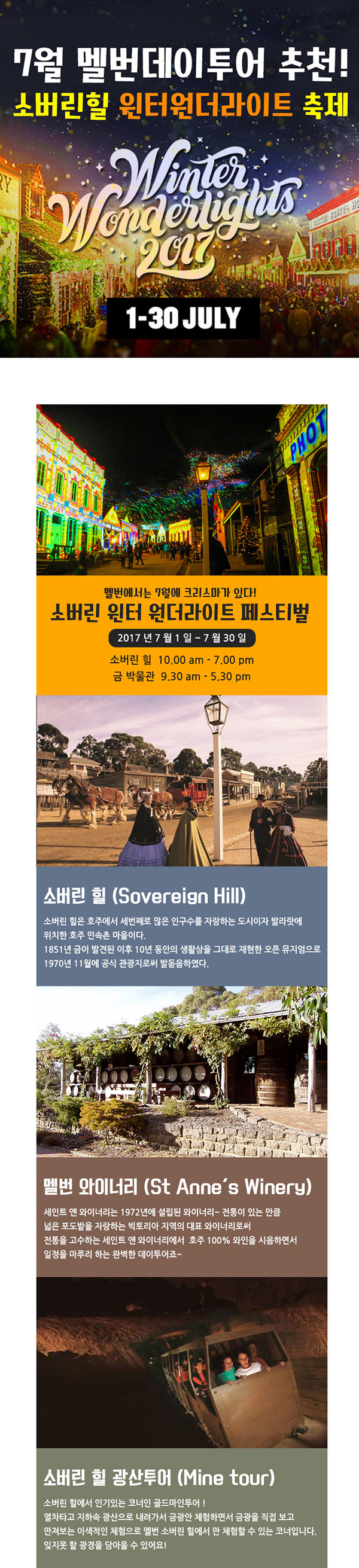 7월의 소버린힐은 럭키! 매년 한번식 열리는 "윈터원더라이트페스티벌"을 즐기고 올수 있는 멜번투어