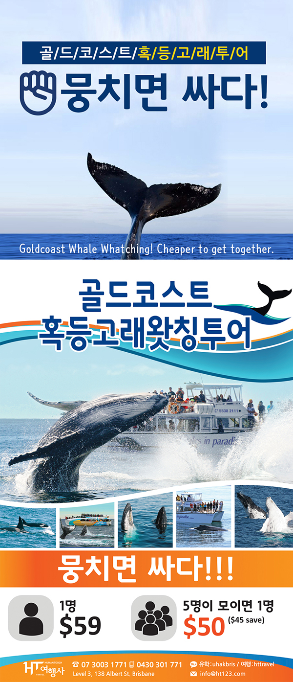 골드코스트 고래투어! 뭉치면싸다!!! $50~