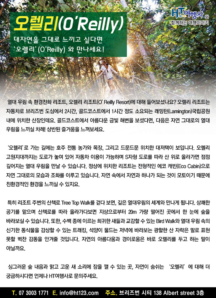 사무실위치: Level 3, 138 Albert Street Brisbane CBD (시티 타임존 오락실 근처) 호주 국내 여행 ㅣ 세계여행 ㅣ 전세계 항공 ㅣ 데이투어 ㅣ 크루즈여행 l 일반영어과정 ㅣ 대학과정 ㅣ 조기유학 ㅣ 장기비자 ㅣ 필리핀 |