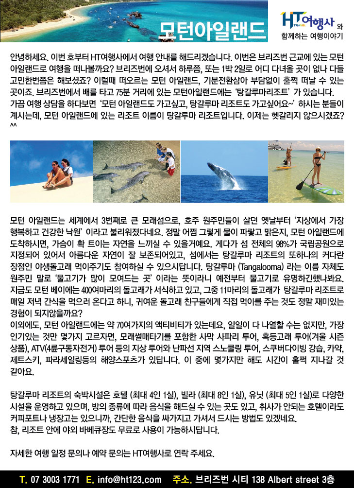 문의: 07 3003 1771 / 0430 30 1771 / 카톡ID: httravel / 이메일 info@ht123.com