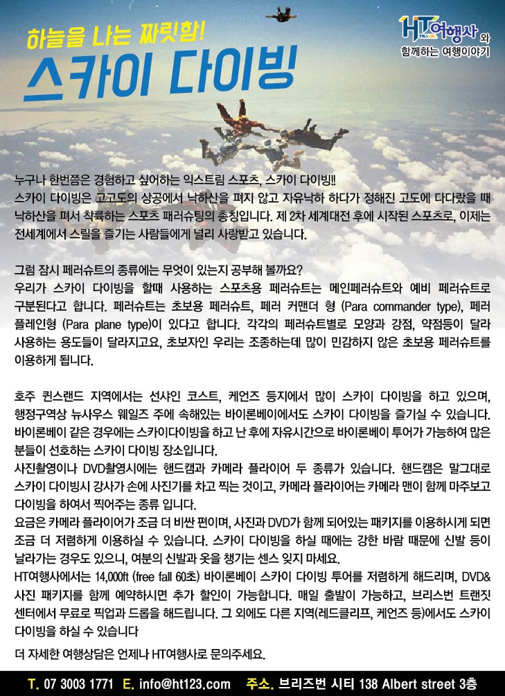 사무실위치: Level 3, 138 Albert Street Brisbane CBD (시티 타임존 오락실 근처) 호주 국내 여행 ㅣ 세계여행 ㅣ 전세계 항공 ㅣ 데이투어 ㅣ 크루즈여행 l 일반영어과정 ㅣ 대학과정 ㅣ 조기유학 ㅣ 장기비자 ㅣ 필리핀 |