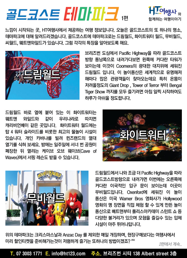 사무실위치: Level 3, 138 Albert Street Brisbane CBD (시티 타임존 오락실 근처) 호주 국내 여행 ㅣ 세계여행 ㅣ 전세계 항공 ㅣ 데이투어 ㅣ 크루즈여행 l 일반영어과정 ㅣ 대학과정 ㅣ 조기유학 ㅣ 장기비자 ㅣ 필리핀 |
