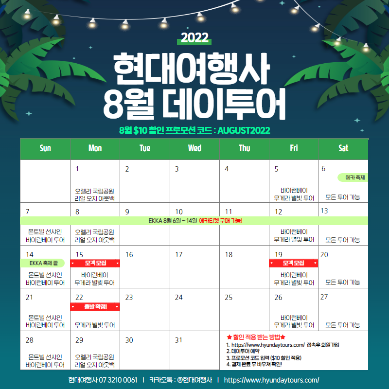 현대여행사 8월 데이투어 달력!