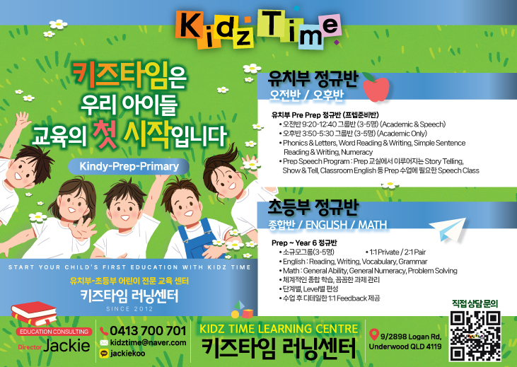 키즈타임 러닝센터 원장 Jackie 입니다.